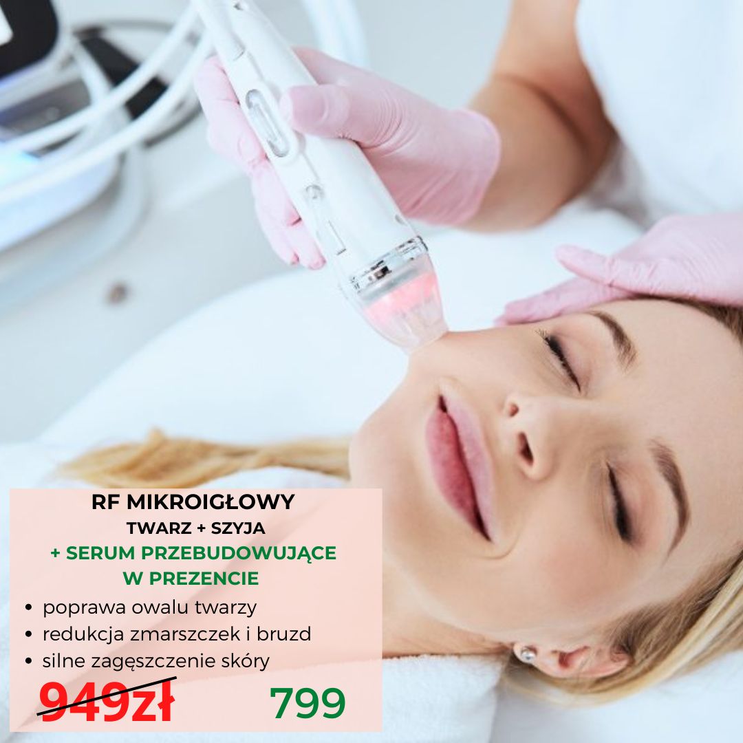 RF MIKROIGŁOWY (twarz + szyja) + SERUM PRZEBUDOWUJĄCE GRATIS 949zł 799zł