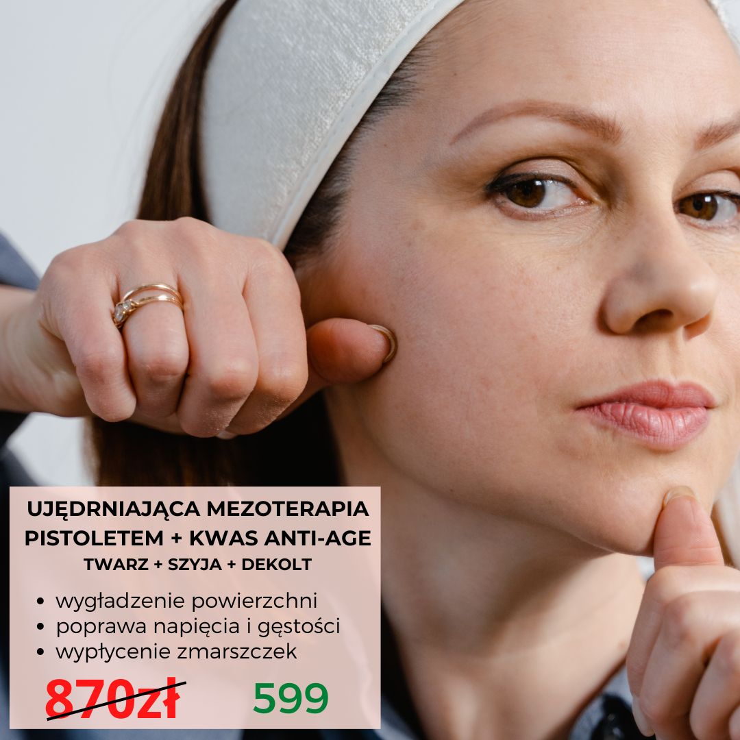 MEZOTERAPIA PISTOLETEM + AMPUŁKA UJĘDRNIAJĄCA + KWAS ANTI-AGE (twarz+szyja+dekolt) 870zł 599zł